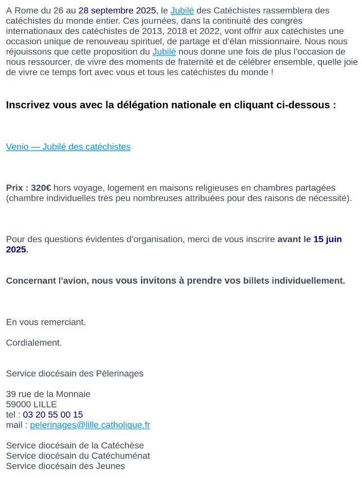 Pour tout renseignement complémentaire, vous pouvez vous rapprocher du service des pèlerinages.