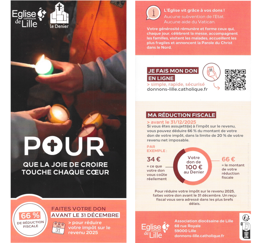 Église de Lille, le Denier Auteur jlPublié le 19 octobre 2025 Cliquer sur l'image pour affichage >>>donnons-lille.catholique.fr >>>