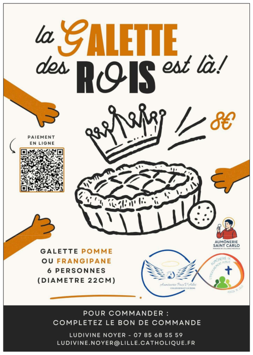 Cette vente de galettes permettra à 26 jeunes de l’Aumônerie Paix V’Ailes et l’Aumônerie Saint Carlo de partir en pèlerinage à Lisieux et au Mont- Saint-Michel avec d’autres jeunes collégiens du diocèse de Lille.