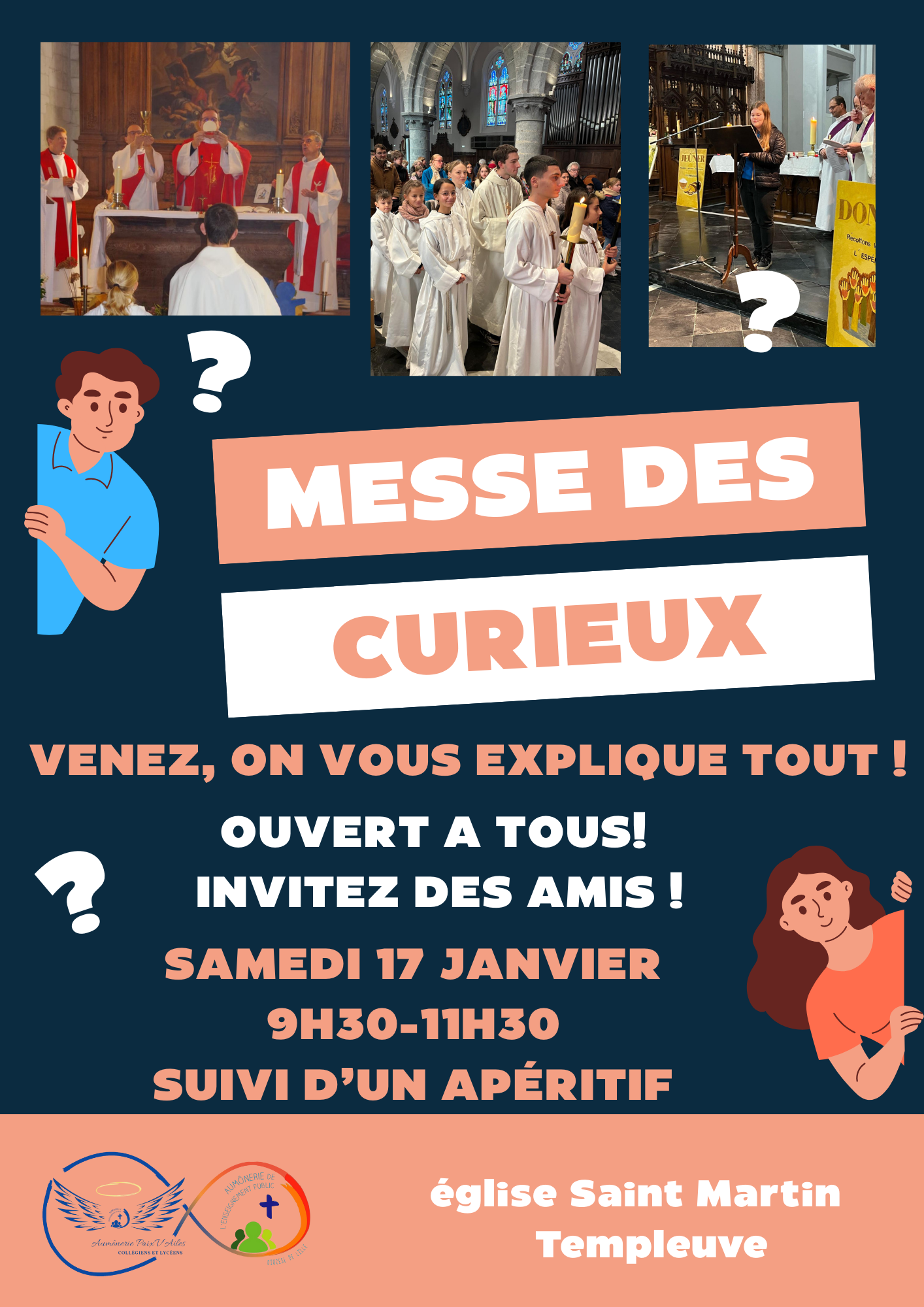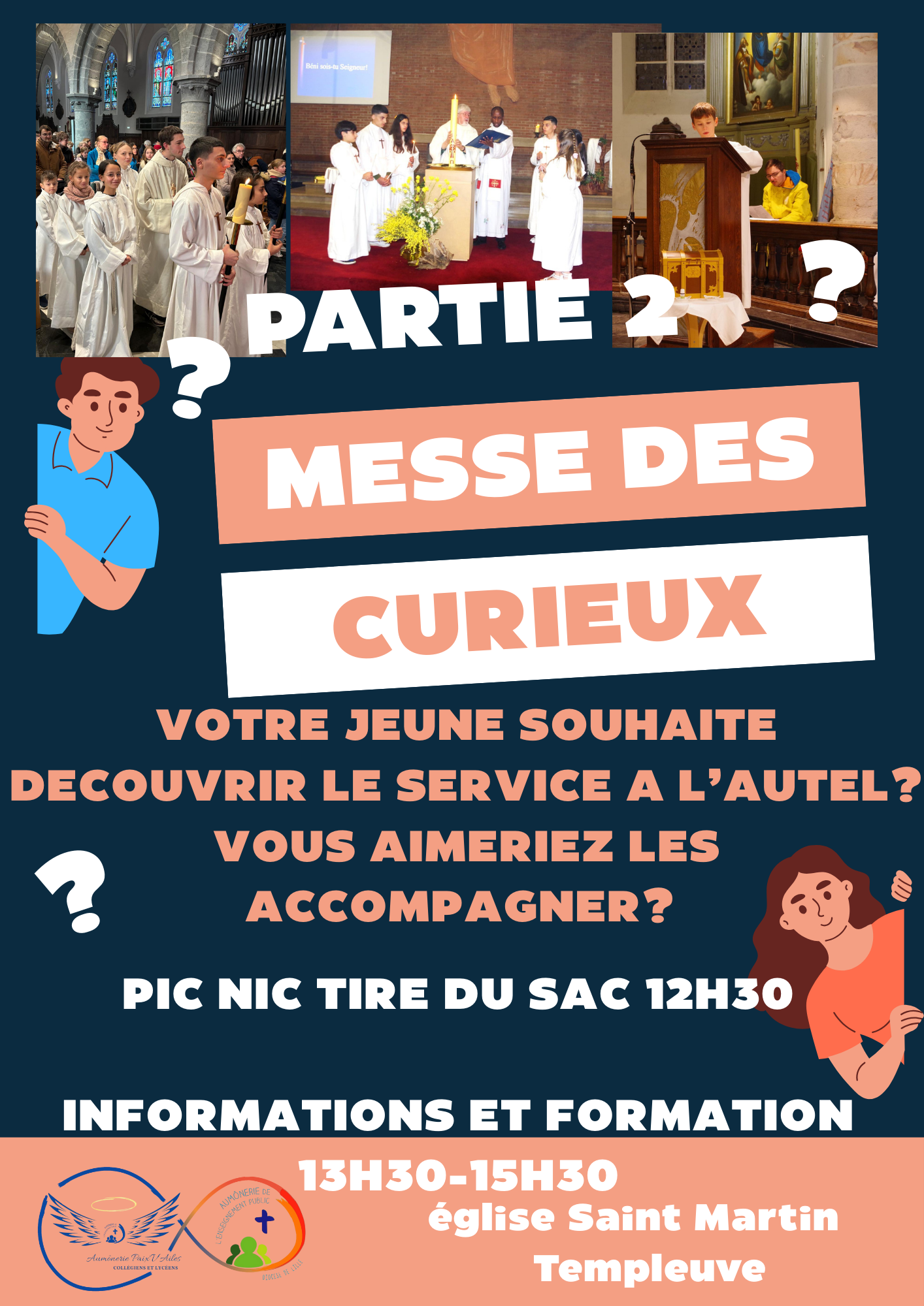 - I) matin : messe des curieux, pour découvrir ou se remémorer les rites de la messe ;